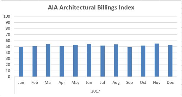 “Overall, 2017 turned out to be a strong year for architecture firms. All but two months saw ABI scores in positive territory,” said AIA Chief Economist, Kermit Baker, Hon. AIA, PhD. “Additionally, the overall strength of the fourth quarter lays a good foundation for healthy growth in construction activity in 2018.”