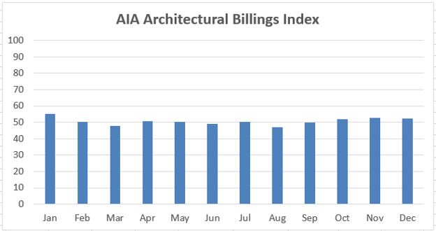 In January 2020, the American Institute of Architects (AIA) reported the December 2019 Architecture Billings Index (ABI) score was 52.5, indicating an increase in demand for design services provided by U.S. architecture firms. This was the third month in a row the ABI increased, ending the rocky year on a positive note.