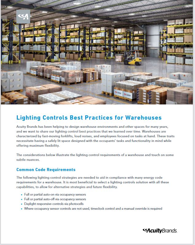 Acuity Brands recently published a best practices guide for specifiers wishing to incorporate lighting controls into warehouse lighting.