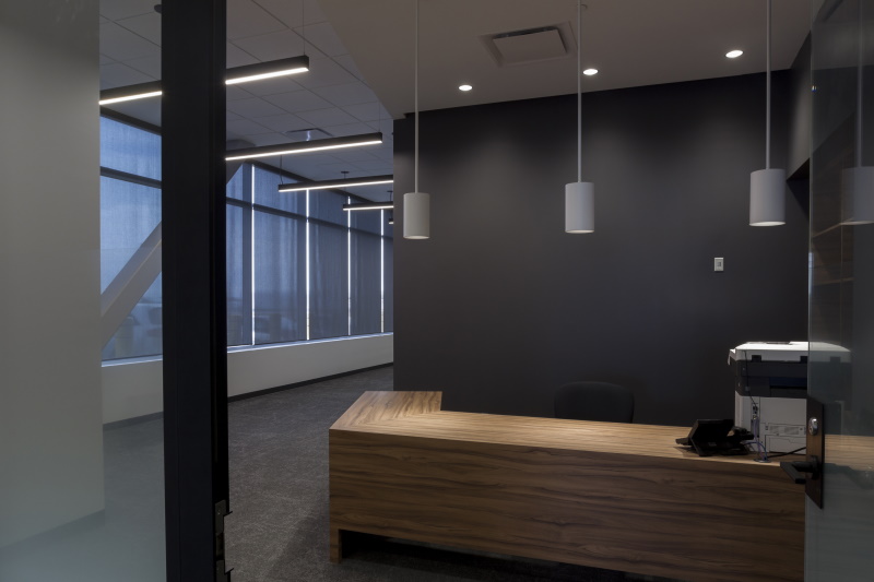 Executive office corridor lighting, utilizing daylight sensors and scheduled with overall office lighting control.