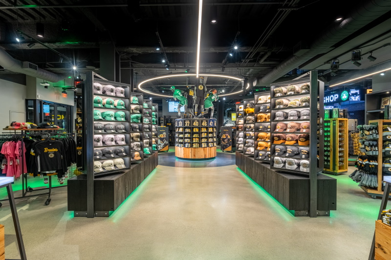 Grit. Heart. Heritage. Authenticity. Principles guiding design for The Boston Bruins and Celtics official team store. The goal? Seamlessly blending exposed ceilings, honest materials and retail merchandise with state-of-the-art audiovisual displays and digital signage, creating an immersive environment enhanced by multi- layered retail and entertainment lighting, featuring automated lighting shows.