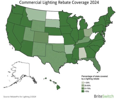In 2024, commercial lighting rebates remain a strong incentive for adoption of energy-efficient lighting and controls in existing buildings. Notable trends in prescriptive rebates include continuing widespread availability, softening demand for rebate dollars, more bonus programs, generally increasing average rebate amounts, and strengthening of networked lighting control rebates.