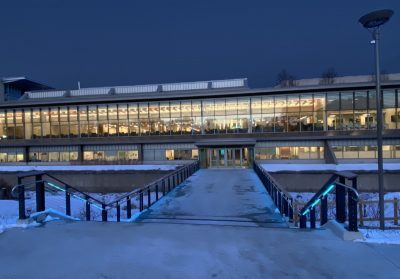 The atrium lighting design creates a pleasant atmosphere, welcoming visitors to the building. White light serves as a backdrop to exhibits accented with blue light.