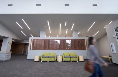 The lighting design for this new hospital focused on the quality of the patient experience, using light as a means to help enhance the wellness and comfort of both patients and their families. Reinforcing the circadian rhythm of patients with daylight and electric light was a key aspect of enhancing the patient comfort and well-being.