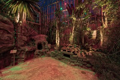 This 18,000 sq.ft Glasshouse in the heart of an urban arts district offers a thrilling year-round escape to the fantastic spiny desert of Madagascar, and the butterfly-filled rain forest of Costa Rica. The Glasshouse was originally constructed in 2003, and this recent lighting renovation included replacement of existing 1000 watt metal halide luminaires to a fully LED lighting system.