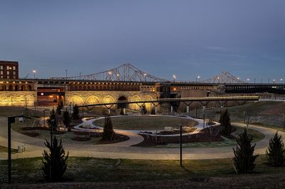 As the Eiffel Tower and the Empire State Building define their home cities, the Gateway Arch in St. Louis is arguably the Midwest’s most important icon. While the Arch gets all the visual attention, the national park it occupies is equally impressive. The 91-acre grounds of the Gateway Arch National Park recently underwent an extensive landscape re-design, including the removal of an existing parking garage, the creation of an elevated walkway, and several new walking and biking paths. And as part of this re-design, local company Randy Burkett Lighting Design created a complete new park lighting system, utilizing ETC’s Mosaic family of products.