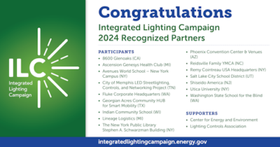 The U.S. Department of Energy’s (DOE’s) 2024 Integrated Lighting Campaign (ILC) recognized 16 organizations for exemplary commitment to energy efficiency and environmental responsibility in their buildings and outdoor spaces, highlighting projects that exemplify showcase effective lighting upgrades involving systems integration.