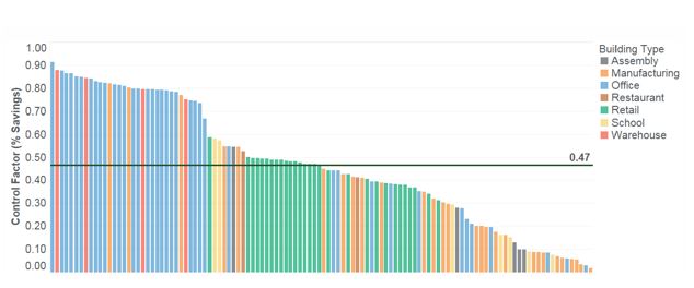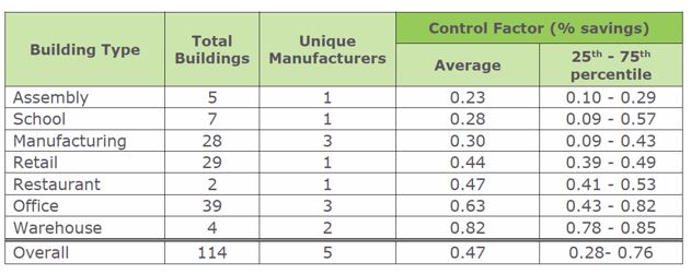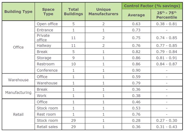 To address this barrier, the DLC embarked on an ambitious study to determine average lighting energy savings resulting from installation of networked lighting controls. The DLC report analyzed hourly energy data monitored in 1,200 zones in 114 commercial buildings to produce an average estimate. It compared LED lighting with networked controls operating against a baseline consisting of what energy use would be if the lighting was ON and at full output during operating hours. This methodology provided a standardized way to evaluate savings in a wide range of zones and control systems.