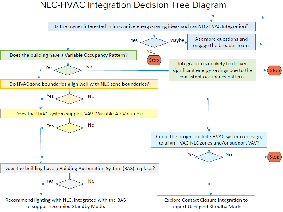 Research shows that adding NLCs to commercial lighting upgrades can cut a project’s new lighting load in half. Taking this a step further, integrating lighting controls with HVAC can save up to 30 percent of HVAC energy and 20 percent of the total energy load in large commercial buildings. Adoption of this strategy has lagged, however, largely due to the complexity of integration projects, which require collaboration between building owners and operators, electrical/lighting engineers and contractors, and mechanical/HVAC engineers and contractors, who often work independently.