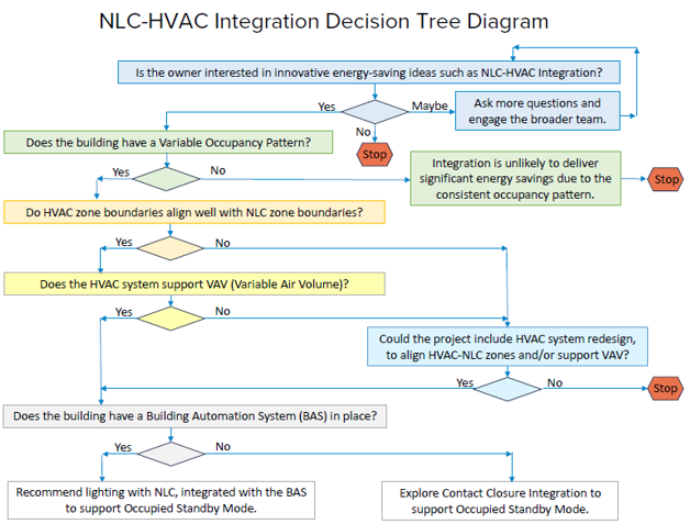 Integrating lighting control and HVAC systems saves energy. DLC research has shown that NLC systems can generate, on average, 48 percent lighting energy savings. By integrating the lighting control system with the HVAC system, up to 30 percent HVAC energy can be saved, making investment in NLC systems more attractive.