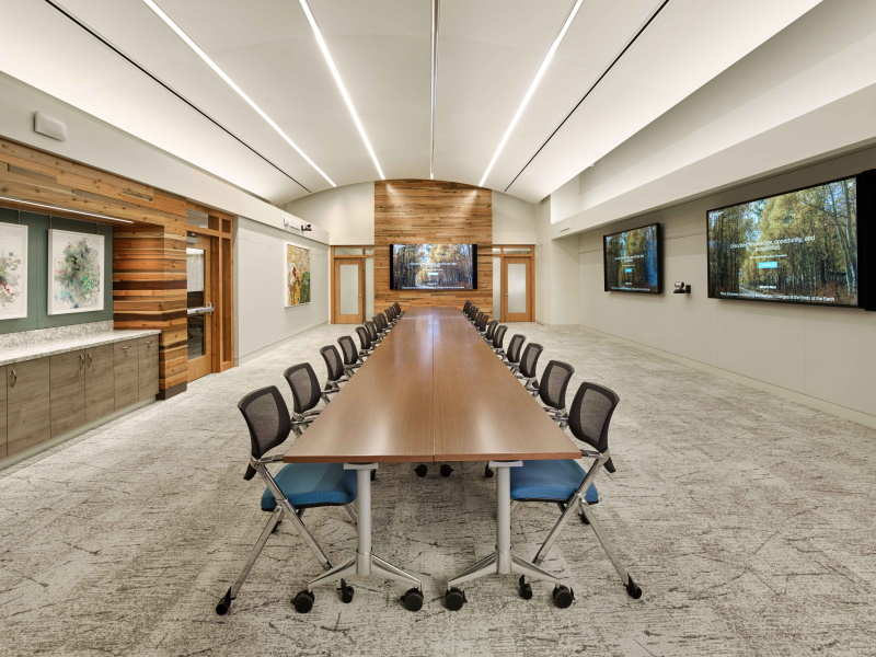 The Heising-Simons Foundation is a family foundation awarding grants to advance sustainable solutions in climate and clean energy, enable groundbreaking research in science, enhance the education of children, and support human rights. Their office expanded to incorporate more workspace, a small conference room, and a flexible video conference room. This challenging room is fitted with large screens, cameras, and microphones to facilitate high quality video conferences, classes, lectures, and presentations.