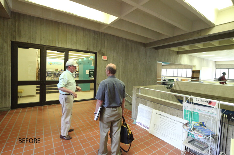 This shows the previous condition wraparound strips in pan-joist coffers. The challenge was to give the spine a distinctive, more spacious character than other spaces.