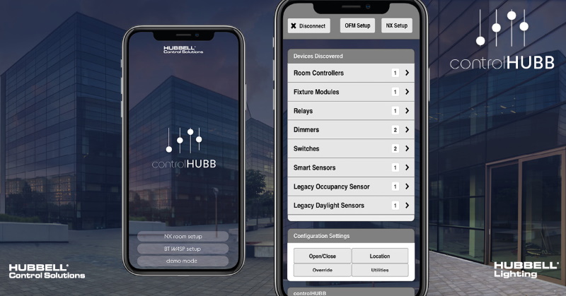A new application from Hubbell Control Solutions, “controlHUBB,” can be used to configure all types of systems, be it wired or wireless, from a single app.