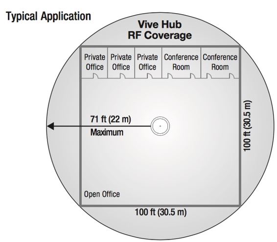 When designing a wireless control system, pay special attention to manufacturer recommendations for limitations when the signal must travel through obstacles such as interior partitions and dense construction materials such as cinderblock walls. The manufacturer may offer other recommendations to help locate devices, such as keeping them a certain distance from metal objects that may impact the accurate transmission of network information.