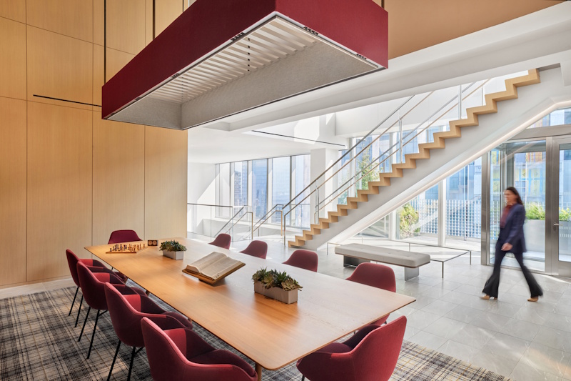 By utilizing all low-voltage power, lighting can be easily moved or controls settings changed without an electrician. This design solution provides for simple and inexpensive changes to allow ultimate flexibility as the firms needs change or working styles react to world events such as Covid. Transmitting power with Cat5e cabling, each fixture is individually digitally addressed so that light levels are tailored to each occupants needs rather than preset scenes for large areas. Surpassing New York code requirements, daylight sensors are utilized in all spaces throughout the project, an important energy conservation measure for a building with unobstructed daylight. A dense 10’ maximum on center sensor network coordinated with individual fixture zoning drastically reduces energy consumption by up to 50% by turning on smaller zones in reaction to occupancy.