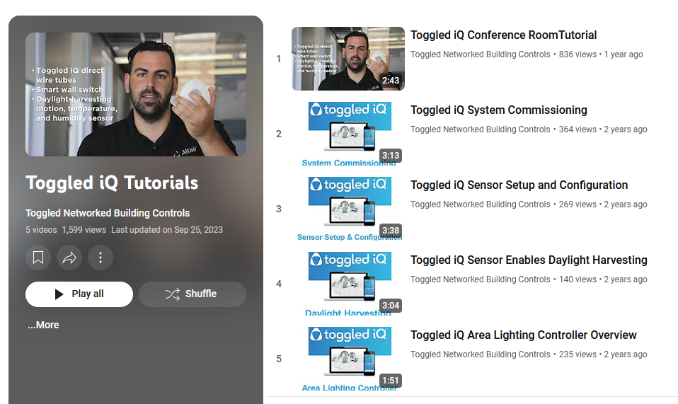Toggled iQ offers a series of short videos serving as tutorials for its networked lighting and building controls and how to apply them to various uses such as conference rooms and daylight harvesting.