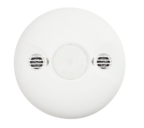 The CS107D dual-tech ceiling sensor combines PIR and ultrasonic detection technologies to deliver superior occupancy sensing accuracy and 600 square feet of coverage. By fusing line-of-sight PIR with volumetric ultrasonic detection, this Bluetooth-enabled sensor eliminates the blind spots and false triggering common with single-technology sensors.