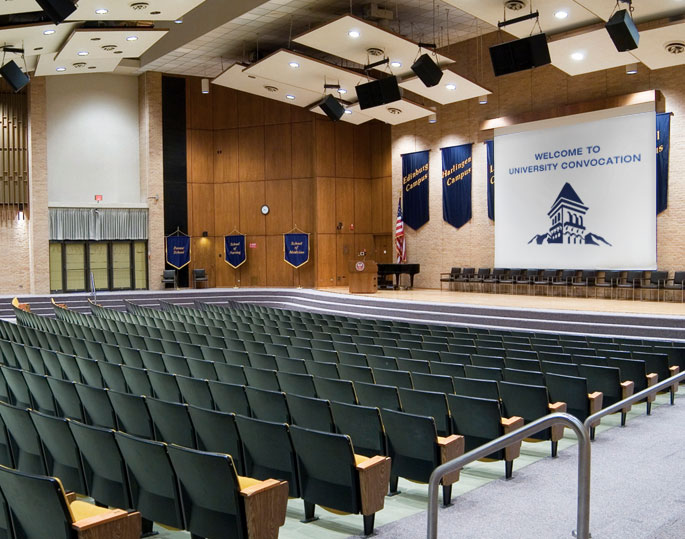 2) select General or AV mode for the general lighting or otherwise dim the lights for AV presentation, and