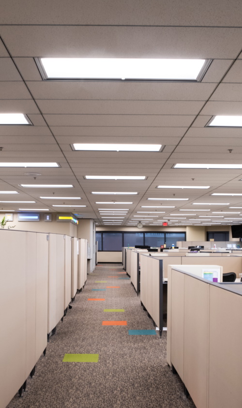 The project team estimated that energy performance with the networked controls would generate as much as 75% beyond that anticipated from the lighting upgrade. Most of the control zones were configured with a 60% high end trim, along with either occupancy, vacancy, or scheduling to achieve the expected energy savings. What’s more, with the LLLC design in place, the spaces are highly flexible for future re-configuration with changing business needs or even changing tenants.