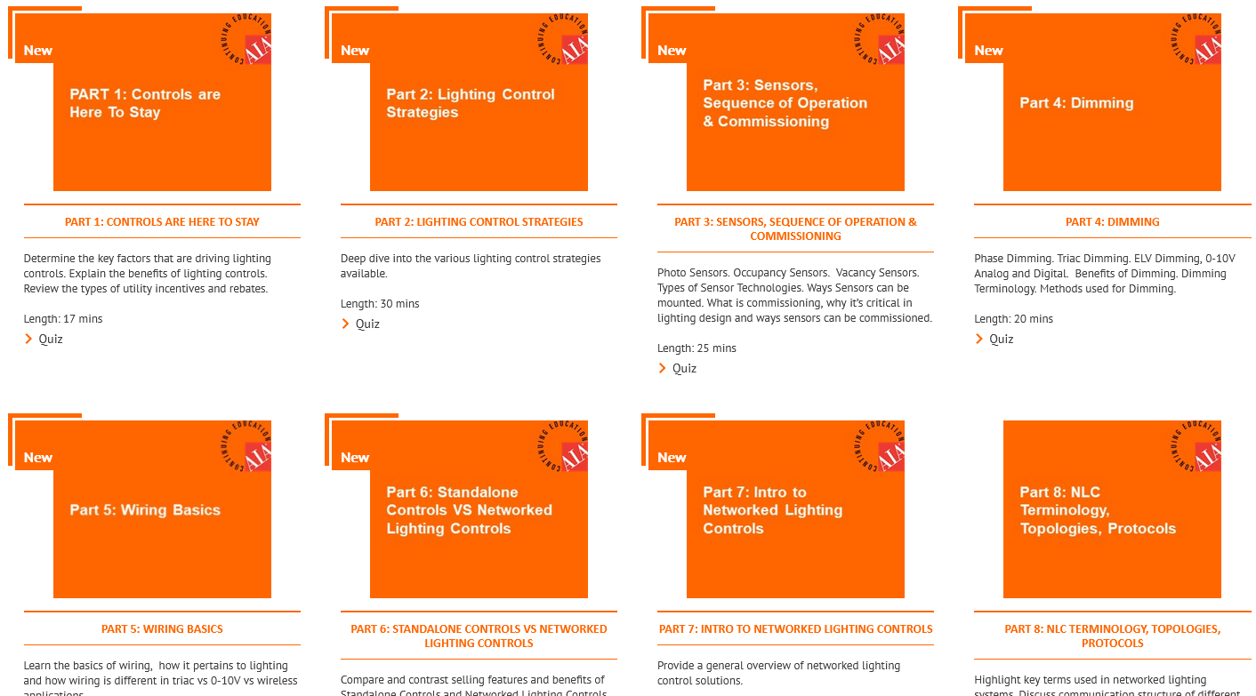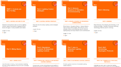 LEDVANCE offers on-demand online training modules on various aspects of lighting controls via the company’s Lightpoint Training Center. Topics include strategies, sensors, dimming, wiring basics, networked controls, and more.