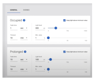 • Graphical User Interfaces (GUIs): These allow Startup Technicians to visualize the layout of lighting zones, group luminaires or devices, and configure settings like occupancy timeout, daylight setpoints, and dimming levels.