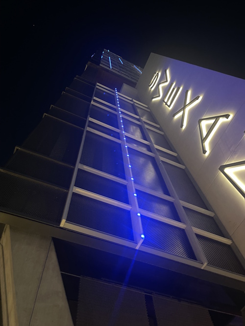 The project has linear LED dots integrated into vertical fins on the facade of the contemporary architecture by world-renowned Japanese Architect. Each diode is individually addressed for color and intensity to create a dripping lighting effect complete with dramatic color changes via DMX controller. However, that is not why the project was nominated for a control award.