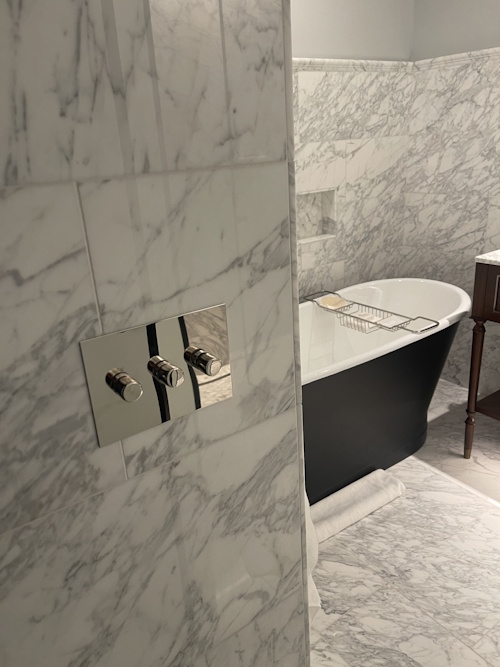 Ownership demanded “old-school” brass rotary dials for guest rooms. The tactile touch and feel were as critical as the vintage looks. These analog dials had to be researched and tested for sensory touch and quality. The dials had to be converted into digital commands to integrate into the new whole room control system. With a push, dials activate a preset light level, and then a twist acts like a master override. To further enhance the guest’s experience, under lavatory lighting with custom occupancy sensors provide a soft nightlight effect, masked to eliminate false triggers when walking in the adjacent corridor. Above code requirements, each guestroom and suites incorporate occupancy sensors and daylight overrides.
