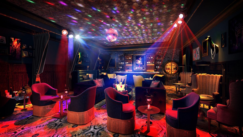 Finally, the “speakeasy” includes full DMX control of everything from mirrored balls, color changing coves, and multiple automated fixtures. Preset scenes or DJ control for special events provide maximum flexibility.