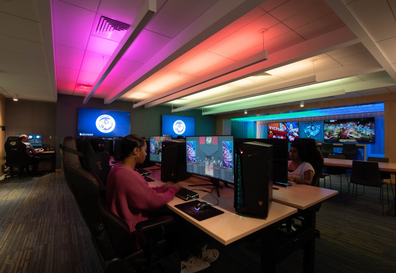 Endless combinations of colors and effects are available to attract attention to the nascent E-Sports program, thanks to the ultra-flexible lighting and control system’s design.