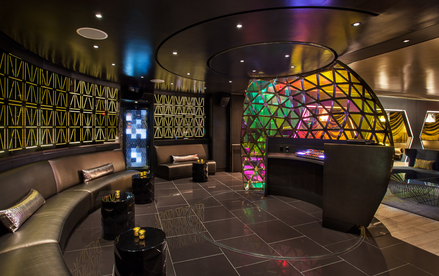 DJs play to a packed room every night. The curved LED wall behind them bumps to the beat and spins like a record while playing pre-programmed light patterns. The DJ can select from a pre-programmed series of light patterns or create a unique sequence on the fly via smartphone.