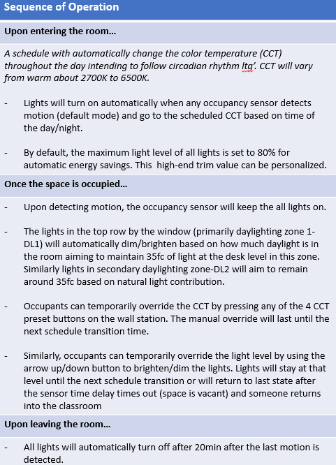They had two options: 1. Standard dimming and occupancy and 2. Added tunable white, or “humancentric” lighting to be adjusted on a schedule or on-demand. The general assumption was that humancentric lighting would be cost-prohibitive, but Sabyr and the school remained hopeful.