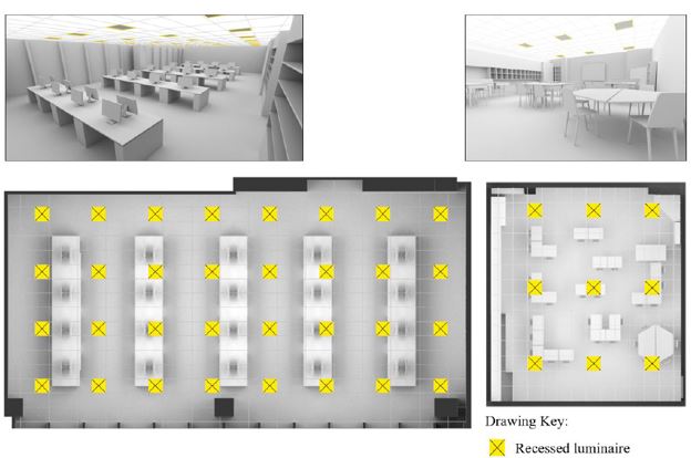 PNNL modeled an open office and classroom, varying light output, spectral emission, light distribution, task orientation, duration of stimulus exposure, and more in a series of simulations totaling 45 unique conditions. The researchers determined that current IES task light level recommendations did not satisfy EML and CS targets for either office or classroom environments.