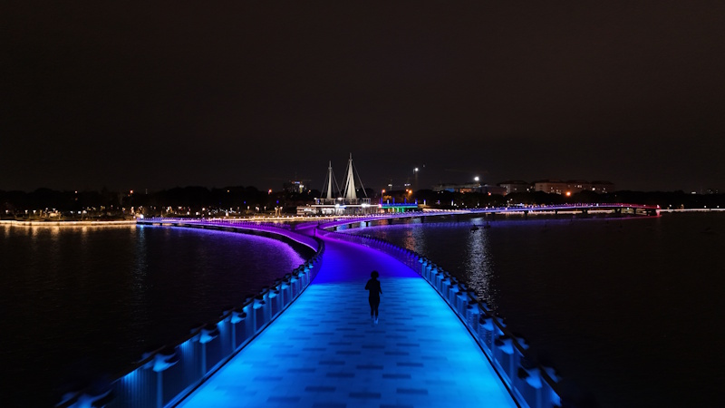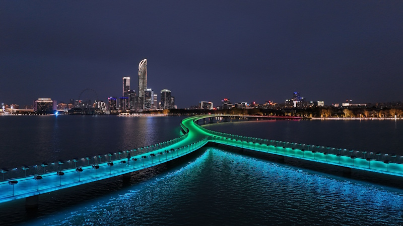 Creating a continuous 15-kilometer intelligent lakeside running route and a 3.5-kilometer interactive “light-chasing” running path over water and shoreline by the wireless control system.